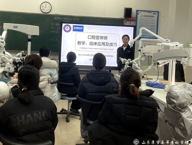 公司专业讲师现场授课,从牙科显微镜的工作原理、操作规范入手,重点讲解其在显微根管治疗、牙体预备等关键环节中的应用要点,并结合影像演示与典型案例分析,帮助参训师生加深理解。在实操环节,同学们分组使用显微镜设备,在仿头模上进行练习,讲师针对视野调整、操作姿势、器械使用等进行“一对一”指导,强化规范流程与关键技巧,切实提升训练的针对性与实效性。