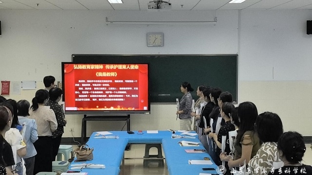 随后,全体教师肃立齐诵《我是教师》,用铿锵誓言筑牢教育初心,将教育家精神内化于心、外化于行,展现了护理系教师队伍凝心聚力、奋发有为的精神风貌。