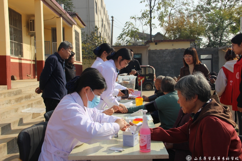 11月14日,护理系党总支联合工会共赴临沂市费县马庄镇开展“健康走基层”世界糖尿病日志愿服务活动。