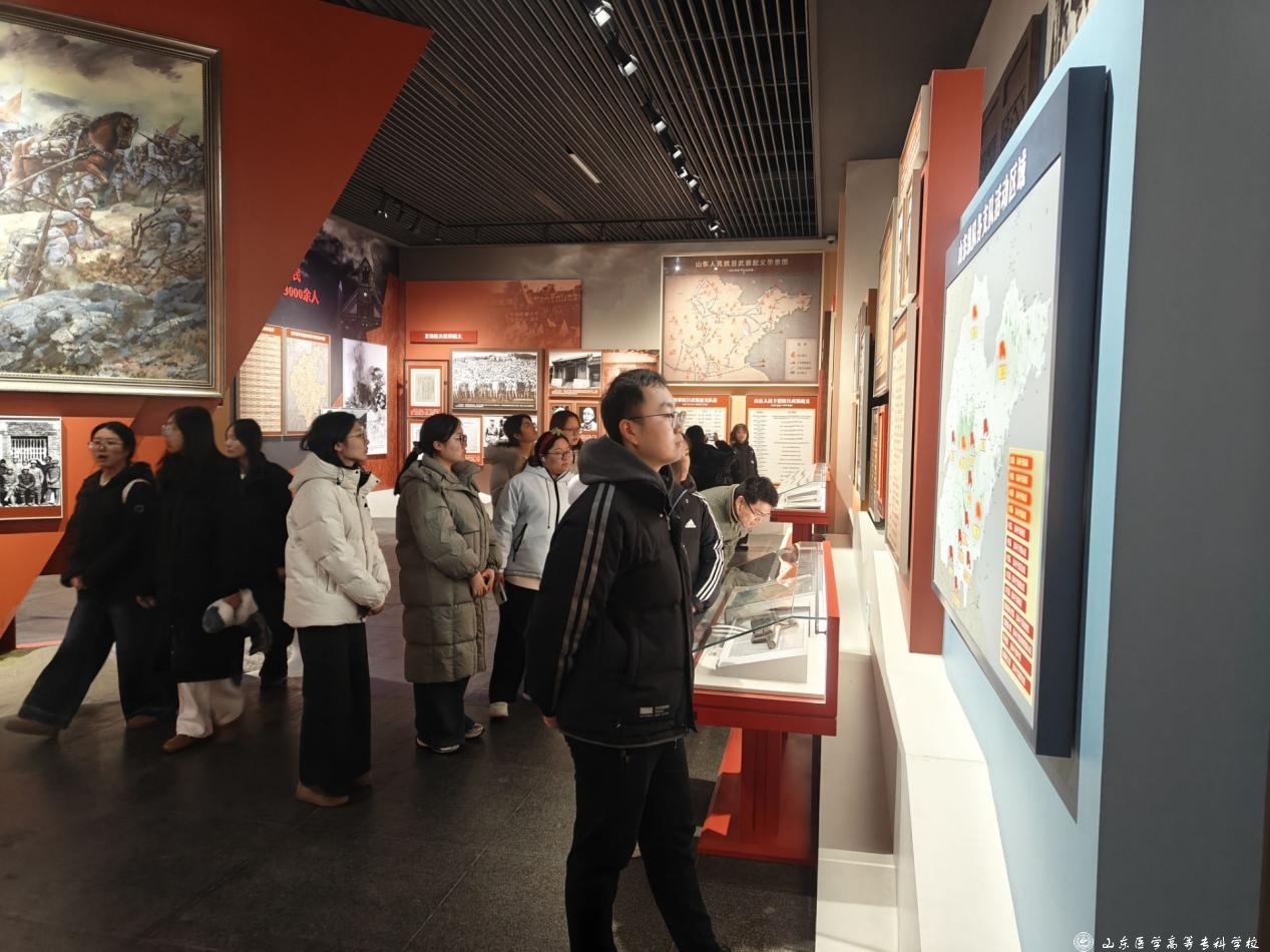 在沂蒙革命纪念馆内,师生们透过历史图片与实物展品,系统了解沂蒙革命老区在抗日战争和解放战争时期的光辉过往,深刻领悟沂蒙精神的丰富内涵。