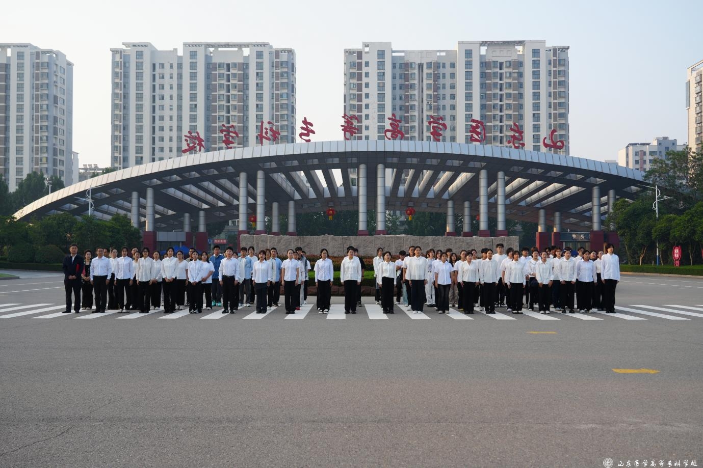 9月30日,山东医学高等专科学校举行庆祝新中国成立76周年升国旗仪式,200余名师生代表参加。