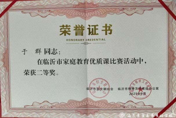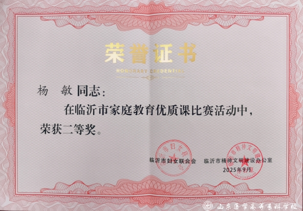 近日,山东医学高等专科学校杨敏、于群在临沂市家庭教育优质课比赛中均获二等奖。