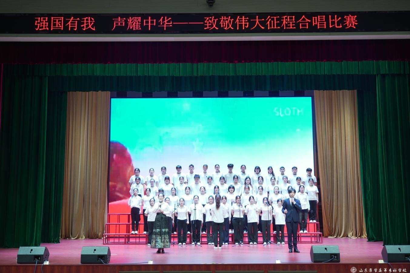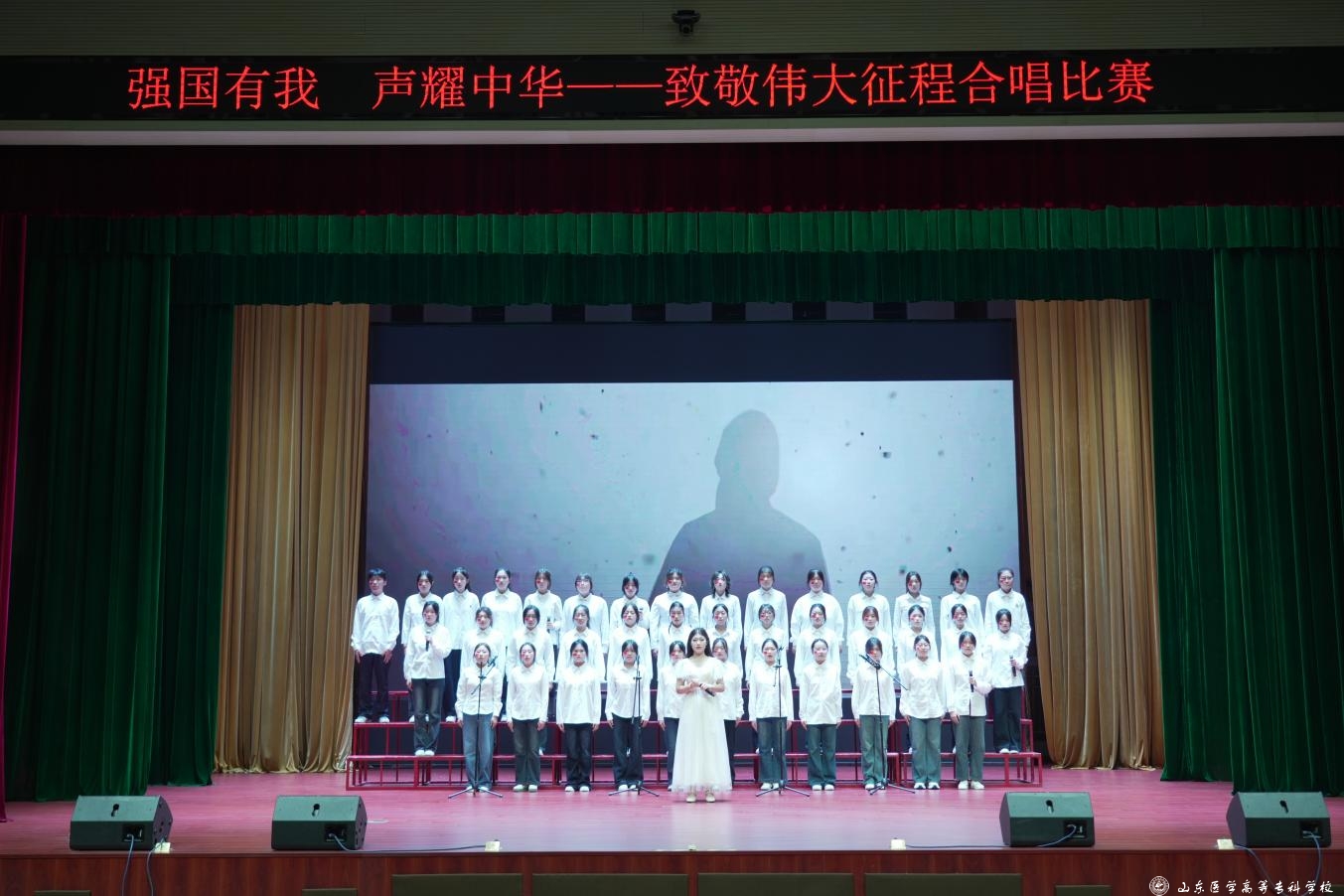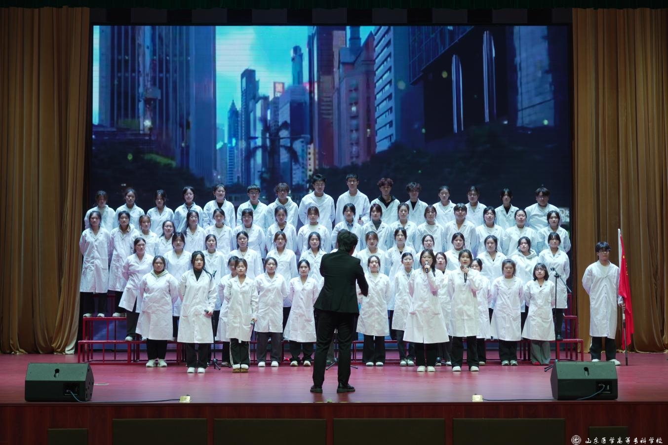 演出中,11支参赛队伍依次登场,《大中国》《祖国不会忘记》《走向复兴》等曲目轮番唱响,将红色记忆与医学初心相融合,展现学校学子“敬佑生命、救死扶伤”的职业追求与“强国有我、复兴有我”的青春誓言。