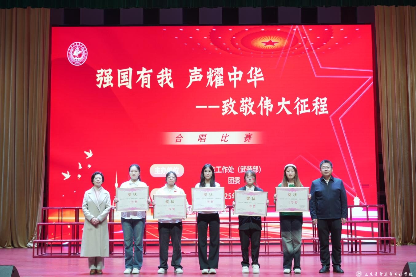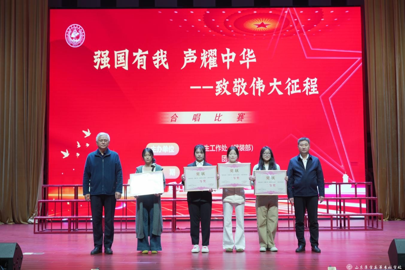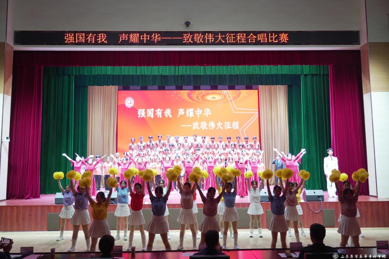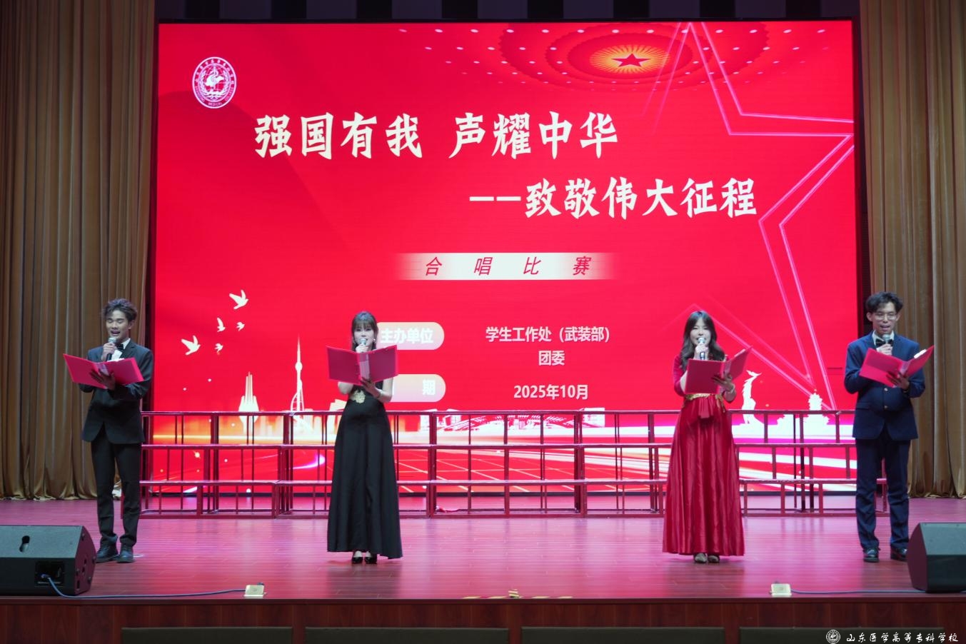 演出中,11支参赛队伍依次登场,《大中国》《祖国不会忘记》《走向复兴》等曲目轮番唱响,将红色记忆与医学初心相融合,展现学校学子“敬佑生命、救死扶伤”的职业追求与“强国有我、复兴有我”的青春誓言。