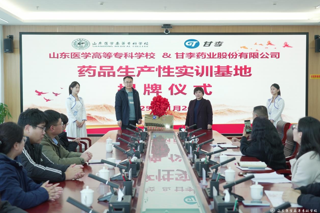 11月26日,山东医学高等专科学校与甘李药业山东有限公司“甘李药业”冠名班协议签订暨药品生产性实训基地揭牌仪式举行,标志着双方合作进入资源整合、协同育人的实质运作阶段。