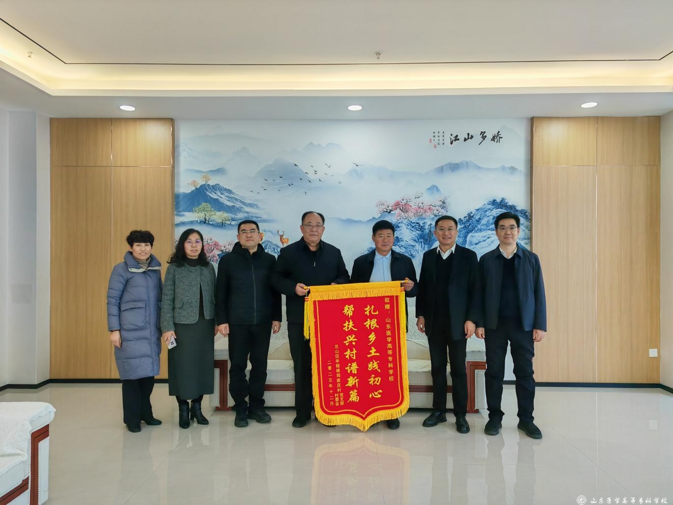 12月30日,市派兰山区第一书记工作大组长张帆来校走访,就学校选派第一书记工作座谈,并送上锦旗和感谢信。学校党委副书记高曰超参加座谈。