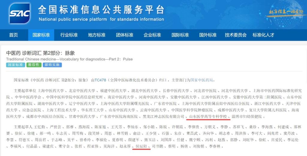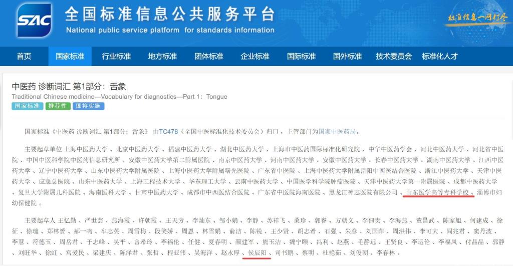 山东医学高等专科学校副教授侯辰阳作为主要起草人之一,全程参与标准研制,在舌脉象术语梳理、框架设计、内涵阐释等方面提出建设性意见,贡献了职业教育视角与临床实践经验。