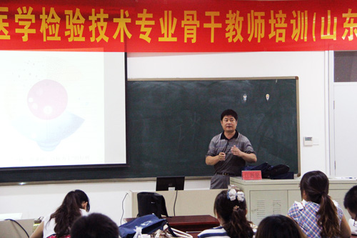 开班仪式上,顾润国副校长首先向来自全国各兄弟院校医学检验技术专业的教育同仁表示诚挚的欢迎和问候,并指出本次骨干教师培训是顺应我国职业教育发展需求的一项重要举措,也是对职教师资培训层次的提升。同时,顾校长还向专家和学员们介绍了我校近年来的发展情况。江新泉院长指出,医学检验专业发展迅速,来自全国各地的医学检验教师们在教学、管理上存在诸多特色,希望大家充分利用此次平台,相互交流启发,深入思考探求医学检验技术教育改革的方法,为医学检验技术教育事业的发展凝心聚力,建言献策。季海生主任指出,医学检验专业在卫生保健领域发挥着越来越重要的作用,山东医专医学检验系办学历史悠久,力量雄厚,对本市医学检验专业贡献巨大。来自信阳职业技术学院的雷志华老师代表全体学员表态发言。