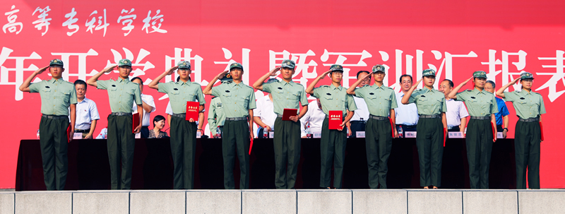 金风送爽,丹桂飘香。9月27日上午,我校2019年开学典礼暨军训汇报表演在学校运动场隆重举行。学校在家领导、各处室和系部有关负责同志、全体教职工、全体参训教官、在校生代表和2019级全体同学参加。典礼由副校长高曰超主持。副校长张庆伟宣读了军训先进连、优秀教官和先进个人表彰决定。党委书记金鲁明向军训团首长赠送了锦旗。