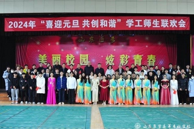 12月27日,山东医学高等专科学校济南校区举办2024年“喜迎元旦 共创和谐”学工师生联欢会。学校领导班子成员,各处室、系部负责同志及各系部辅导员老师、学生代表现场观看了演出。