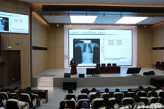 会后,山东省妇幼保健院信息科主任张翼为我校2025级医学影像技术专业学生作前沿动态报告。