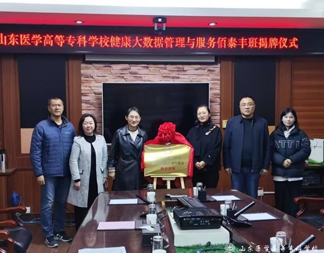 10月31日,山东医学高等专科学校与山东佰泰丰信息科技有限公司联合举办“健康大数据管理与服务专业佰泰丰班”揭牌仪式,开启校企合作新篇章。学校党委委员、副校长伊芃芃,山东佰泰丰信息科技有限公司总经理赵书宇参加活动。