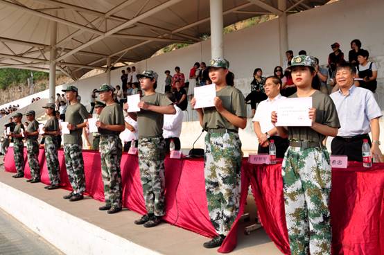 开学典礼上,金鲁明向军训教官赠送了锦旗,葛淑兰宣读了军训先进连队、优秀教官、军事训练优秀辅导员和文明宿舍的表彰决定。