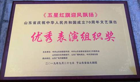 9月27日晚,葛淑兰副校长、济南校区工会王尚云主席带领我校部分教师和精选的护理系123名学生组成的合唱团作为观众合唱方阵,参加了由中共山东省委宣传部、中共山东省委省直机关工作委员会、山东广播电视台等主办,山东广电传媒集团等承办的“五星红旗迎风飘扬”——山东省庆祝中华人民共和国成立70周年文艺演出。我校荣获优秀表演组织奖。