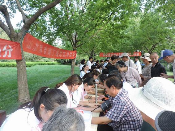 活动共分为四组展开,我校秦召敏老师用模拟人为大家演示心肺复苏、海姆利克等急救方法,并邀请现场市民参与练习;中医理疗组以手诊、推拿等方式为市民进行理疗;体征测量组为市民进行测量并耐心讲解;健康宣传组现场发放宣传册,并对大家关心的问题做出解答。