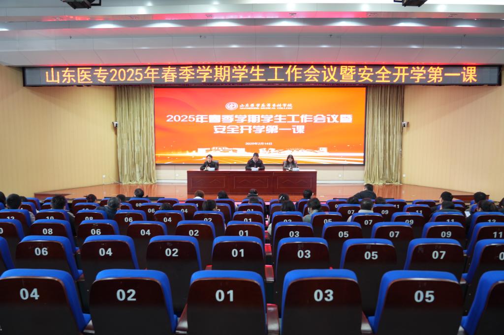 2月14日上午,山东医学高等专科学校在两校区学术报告厅召开2025年春季学期学生工作会议暨安全开学第一课。学校督学王尚云、学生工作处全体人员及各系部副书记、全体专兼职辅导员参加会议。
