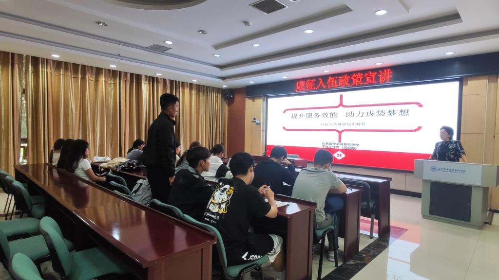 为厚植青年家国情怀,激发医专学子参军报国热忱,9 月 29 日下午,山东医专 “一站式” 学生社区应基础二部邀请,为有应征入伍意向的学生举办应征入伍政策宣讲会。